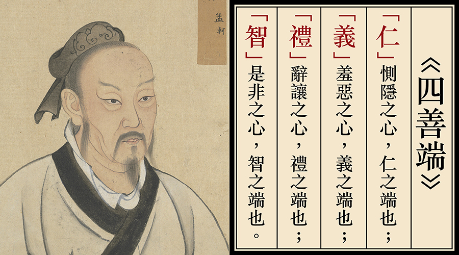 孔子學說:「儒」其特點是強調對仁、義、理、智等基本道德的實踐和修養,這是男人該奉行的責任和禮數。
