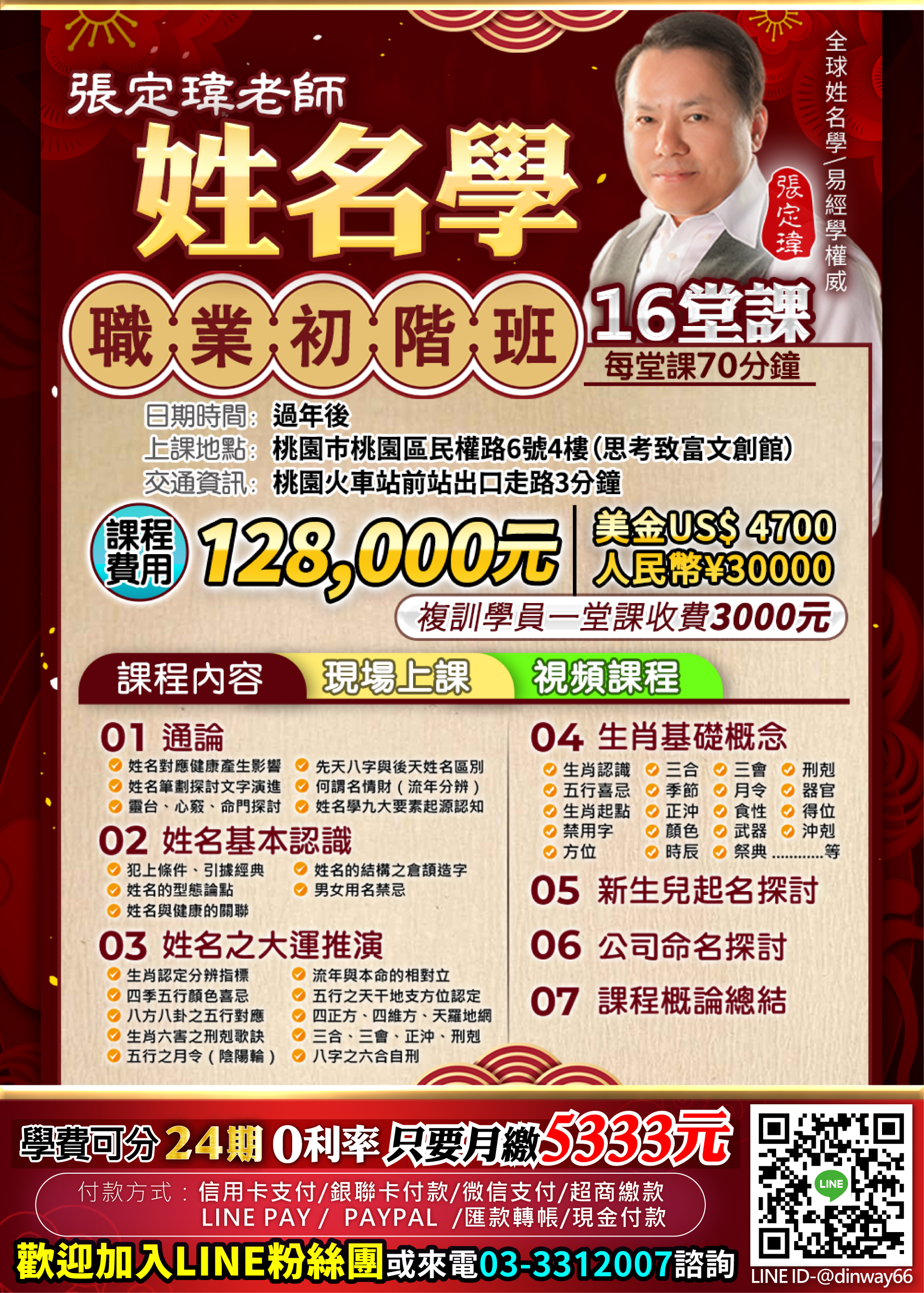 ?姓名學初階班費用:128000台幣、4700美金、30000人民幣